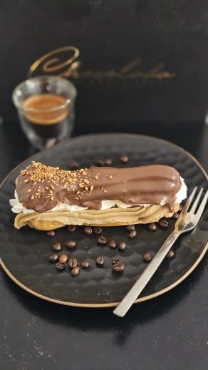 Ingrediente: făină, grăsimi vegetale, ouă zahăr, ciocolată, cafea, lapte, ciocolată neagră.