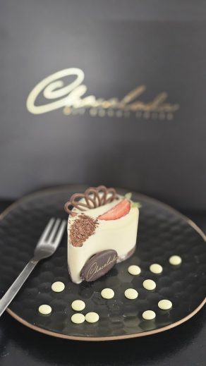 Ingrediente: făină, grăsimi vegetale, ouă, zahăr, cacao, arome, ciocolată albă belgiană, frișcă animală.