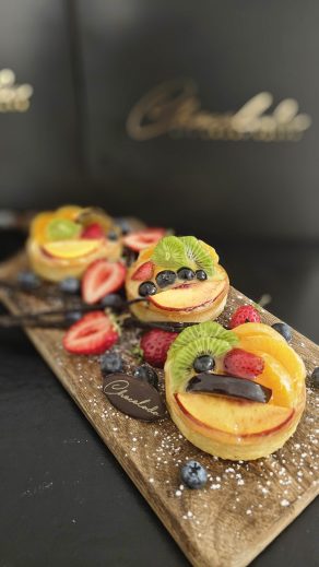 Alergeni: gluten, lactoză, ouă, ciocolată fructe.