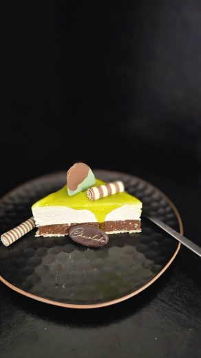 Ingrediente: făină, ouă grăsimi vegetale, cacao, frișcă animală, gelatină, kiwi.